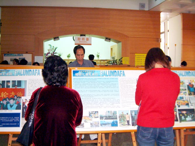 参观民众由法轮大法学会展出的正法图片中,了解了法轮功洪传世界六十多国的盛况以及中国江氏集团迫害法轮功的真相。民众对于一个这么好的功法,受到全世界欢迎却唯独不能见容于他的发源地,均感到不可思议。