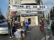 法国法轮功学员要求法办罪犯江罗刘周(图)
