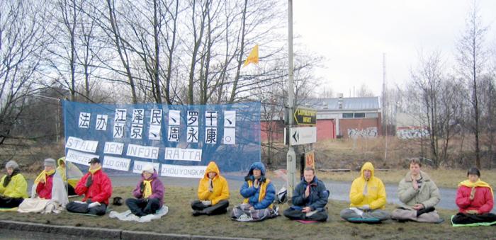 参加此次活动的法轮功学员舒瓦(Chowa)说:最近以来,中国大陆法轮功学员大批被拘捕,遭受酷刑折磨甚至被虐杀。我们并没有任何政治诉求,我们来这里的目的是为了制止江氏集团的犯罪行为,呼吁国际社会正义善良的人们关注这场在中国对法轮功的迫害。我今天特意向公司请了两个小时的假,来参加这次在中国领事馆前的和平抗议和请愿活动。我来到这里的时候,有很多学员已经在这里了。从远处,我就看到了我们打出的横幅:法办江泽民、罗干、刘京、周永康。