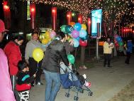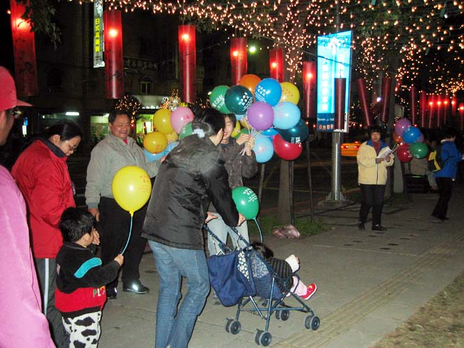 | 随处可见「法轮大法好 真善忍」的汽球 | 在灯会出入口炼功洪法 |