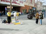 续2月17日德国慕尼黑中使馆前的抗议活动,法轮功学员又于2 月21日走向闹市,在欧迪安斯广场举办了呼吁法办迫害法轮功的元凶江泽民、罗干、刘京、周永康的活动。大赦国际的一位女士说,当她得知镇压的真象之后,整个星期都不能平静,她制作了不少给德国政府的明信片。一位中年男士哭着说,他简直不能看下去,那么残忍地对待法轮功学员。不少中国人也来到广场,有人支持法轮功学员,也有人害怕受到迫害的牵连。