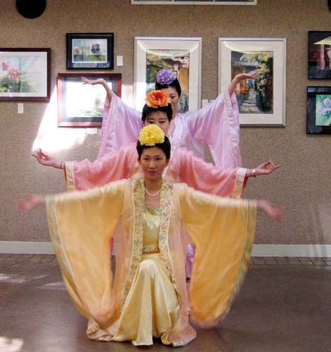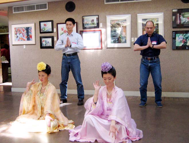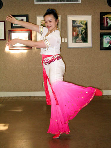 几位附近城市的学员为大家表演了独舞《鱼美人》,多人舞及法轮功功法演示,吸引了来宾的目光,引起了人们的兴趣,成为本次活动的焦点。