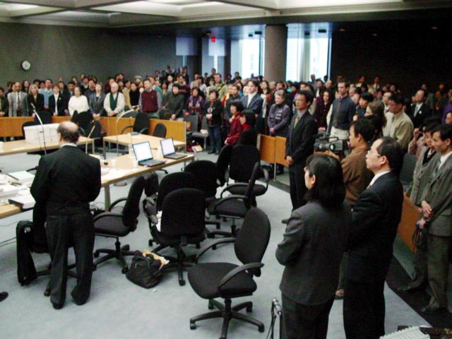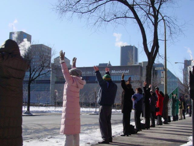 由于大家不仅重视法庭内发正念,同时也重视法庭外向社会讲真象,甚至西人学员每天根据法庭的进展更新真象材料,无意中“吸引”了当地几乎所有的重要媒体的关注。虽然他们在事前都收到了本案终审的新闻公告,但是一些媒体却是在看到很多学员炼功、发材料之后,才进行采访报道的。加拿大新闻社(CBC)、法文日报Le Devoir、英文日报The Gazzete都到炼功场地进行了采访;The Gazzete还跟踪采访了法庭的辩论。