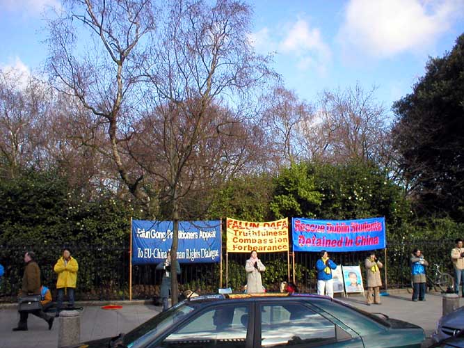 爱尔兰法轮功学员在爱尔兰外交部的会场外进行了和平请愿。