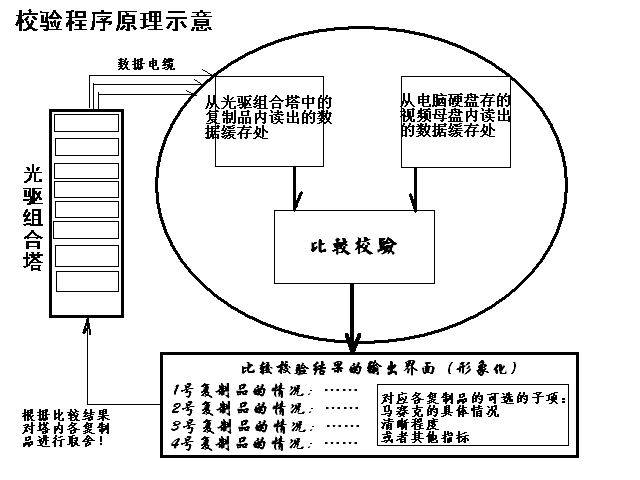 做个验盘机,可以考虑从单个光驱到若干光驱组成塔,内置于电脑或者电缆引入(可利用废弃的刻录塔机体制作,兼顾个人点和规模资料点),使之与母盘的数据进行比较导出结果,让同修在此环节就作出准确取舍,不影响下环节的同修。我画了个原理图附上,请给以协助,既写出软件也画出光驱塔电路接线图,最好能指出使用电脑市场上的现成板件自行装配。如有现成的单光驱验盘的现成东西请告诉到那里下载软件。