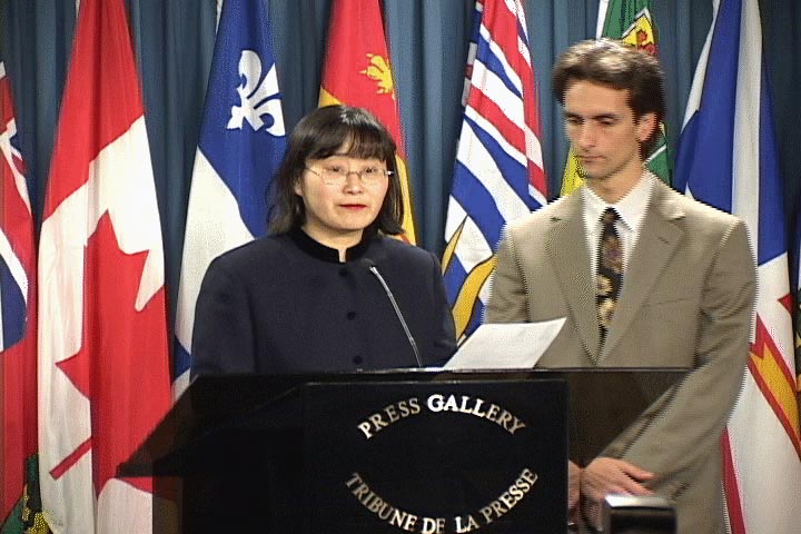 | 契布卡向媒体出示证据 | 露茜-周和契布卡在新闻发布会上 |