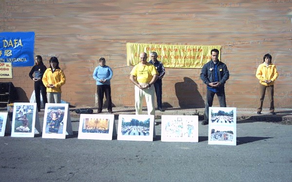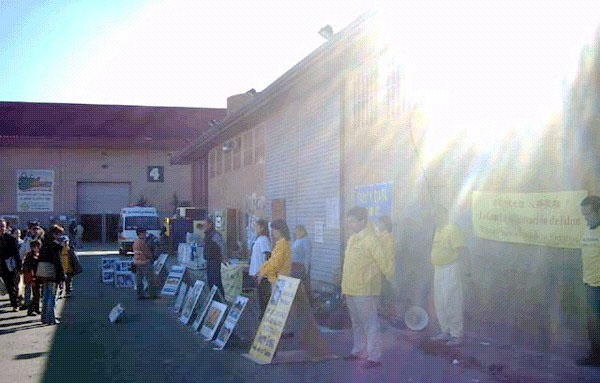 学员们随着优美的炼功音乐演示功法,前来参观的人们立即被吸引住,纷纷询问这是什么功法。在初步了解之后,很多人表示希望学炼法轮功。一位前来学功的女士还邀请学员们到她们文化中心办讲座教授法轮功。