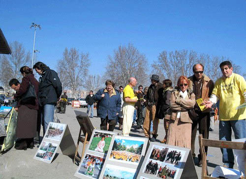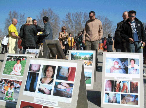 当人们来到展示法轮功学员在中国大陆遭迫害的真象展板前时,被图片上的场面震惊了,他们不能理解在现代文明社会竟然发生着这样侵害人权、剥夺信仰自由、残酷迫害人民的暴行……