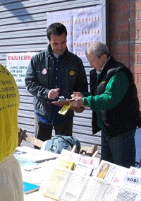 很多人在声援在中国受迫害的法轮功学员的征签表上签字,有的人签好字后还把自己的家人也叫来签字,学员带去的几支笔都不够用。