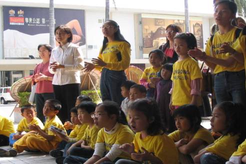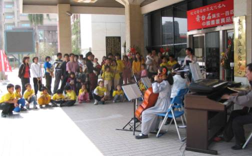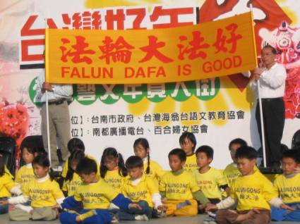 农历年前,台南明慧学校小弟子应邀参加由台南市政府举办的年货大街活动。在表演台上,小弟子表演了「泥人」、「小天使」、「古怪歌」、「宝宝打坐」四首歌曲及动作,小弟子纯真可爱的表演,让一些在场的民众停下脚步伫足观赏。除了歌曲表演之外,小弟子还在台上演示了「五套功法」。虽为冬日,但南台湾当日天气晴朗,下午艳阳高照,虽然顶着烈阳,但小弟子整齐祥和的炼功动作及不喊累不怕热的表现,也让现场观看的民众拍手鼓励。还有带着孩子观看的家长,称赞台上小弟子能够顶着烈阳忍耐这么久的时间,真是不简单,并询问明慧学校是所什么学校?教些什么?要如何参加?而现场其他大法弟子也在旁发送资料讲清真相,台上台下形成一个整体,起到了很好的效果。