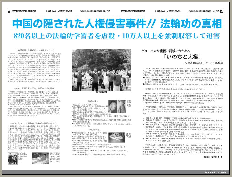 在今年的第二期中,刊登了日本市民支援联谊会代表熊村贵志雄的题为“诉江审判之路――全球公审江泽民大联盟成立”的文章。他在文章中,从由于去中国讲真相而受监禁一年半的金子容子在中国受到的非人折磨谈到江氏集团为了企图铲除法轮功而耗费了国家的大量资源并且做出种种卑劣的表演。他在文章中呼吁大家不分肤色,性别,年龄以及社会地位,为了早日结束这场残酷的迫害,请大家一起行动起来,将迫害法轮功的元凶江泽民早日送上审判台。