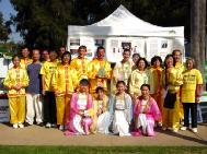 特别令人高兴的是好几位得法才几个月的新学员首次参加了整个游行活动。其中一对来自中国广东的夫妻是六天前刚刚在图书馆参加完法轮功介绍会的,他们不仅参加了游行,还在展位上表演功法和发真象传单。通过参加这次游行,大家也深切感受到圣地亚哥学员间的配合更加密切,协调,观众从学员慈悲,祥和,纯净的心态中能真正感受到大法的力量,认同大法的美好,进而使更多的众生获得救度。