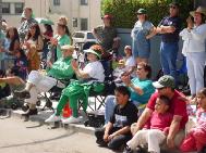 | 圣地亚哥学员参加“St. Patrick 日”的游行队伍 | 游行结束后,部份学员在展位前与奖杯合影 | 学员在公园集会处的临时舞台上表演功法 |