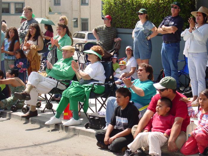 在整个游行过程中,观众的掌声一路伴随着法轮功学员的队伍。人们以各种方式向法轮功表示敬意,欢迎和感谢。游行主办者沿街设了近十个广播点,法轮功学员的队伍所经之处,他们不停地向观众介绍着法轮功功法、法轮功在世界洪传情况、法轮功创始人所获得的奖励,以及免费在圣地亚哥教授法轮功的情况。
