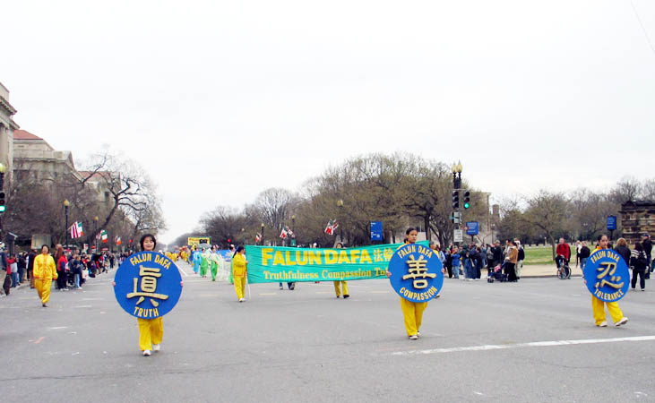 【明慧网2004年3月16日】3月14日中午时分,美国首都华盛顿DC宪法大道两旁人群如潮,翘首期盼一年一度的美国国家 St. Patrick 节游行开始,以庆祝爱尔兰民族传统节日— 圣派屈克节。