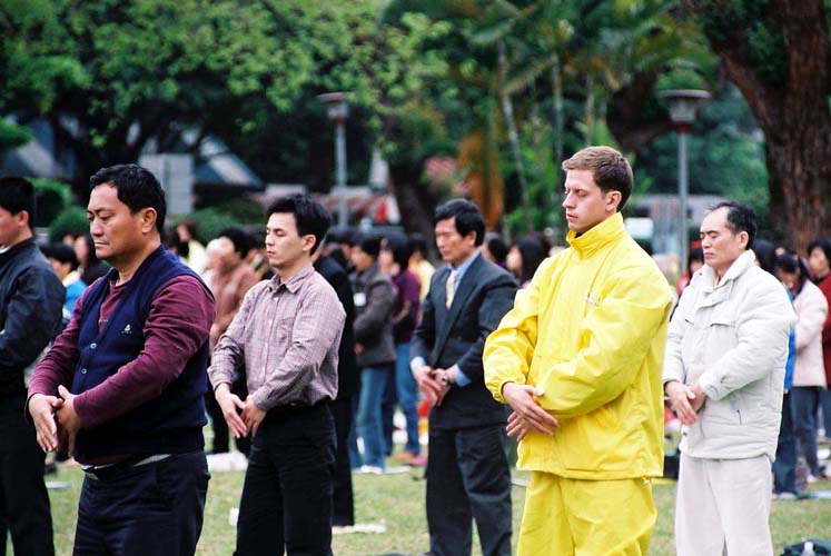来自桃园的彭士文先生表示父母妻子一家都修炼,全家身体健康,健保卡几年来都是A卡。而且遵循法轮大法所教导的「真、善、忍」法理,家人彼此会为对方着想。对小孩教育以前是着重于提高竞争力,修炼后教育小孩能成为有益社会的人。