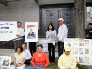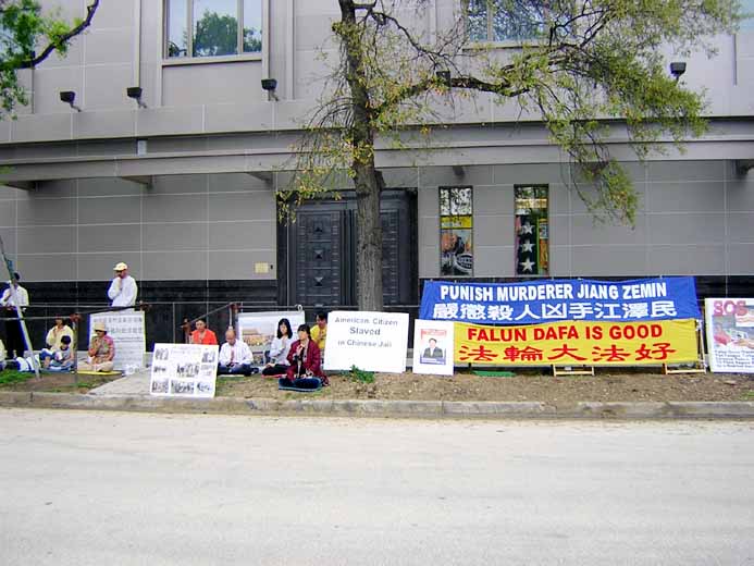 | 法轮功学员在休斯顿中领馆前和平请愿 | 学员发言,呼吁关注法轮功在中国遭受的迫害 |