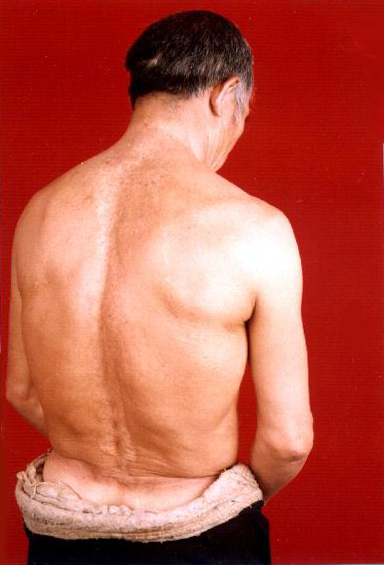 持续折磨至20多天后,于3月15日,丧心病狂的葛传义竟把一壶开水倒进王福生的脖领处,把王福生从脊梁骨至腹股沟全部烫伤,起了一溜鸡蛋大小的水泡。恶人赵明涛更是魔性大发,于第二天,掀起王福生的上衣,用木棍把烫起的水泡尽数打烂,致使王福生脊背血肉模糊、脓水四溅。
