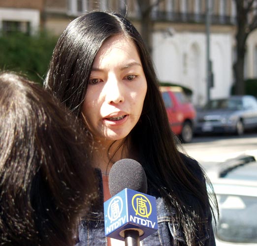 在集会上,来自马里兰州的范娅姑女士说:我不炼法轮功,但我57岁的妈妈却因为修炼法轮功连续三次被捕,我知道妈妈是个人人称道的好人,现在仍被关押在郑州市公安局第一看守所,生死不明。为了我的母亲,也为了所有法轮大法修炼者,我们一定要把那些(中国)邪恶的政府,公安向各国媒体曝光!把他们剥夺和践踏人权的丑闻公诸于全世界!她含泪恳求美国政府,善良的民众伸出援手,帮助营救她在中国被迫害的母亲和所有被迫害的法轮功学员。