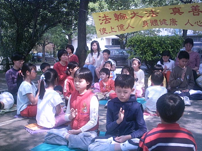 在台湾,春天明媚的季节,法轮功小弟子得以在荫凉的树下读书学法;得以天真无邪地和同伴嬉戏;及彼此鼓励做个符合“真善忍”的好人。然而在中国大陆,由于江氏集团的残暴无耻,至今还在持续地上演一幕幕迫害“真善忍”的荒唐丑剧,广大的百姓遭受谎言的蒙蔽,成千上万的法轮功学员被酷刑虐杀、被非法对待,或被迫四处流离失所,无家可归;还有许许多多本该是天真无忧的孩子们,因江氏集团谎言的宣传灌输而对“真善忍”怀有仇视。他们应该是国家未来的栋梁之才啊,如此摧残民族幼苗的纯真心灵,何其忍心啊?