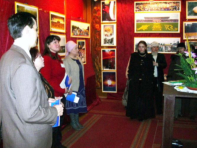 在这期间,有一批来自基辅的中国人到我们城市作客并宣传中国文化,办画展。就这样“偶然”的被安排到这个博物馆,和我们在一起。在他们的典礼那天我们给他们赠送了真相光碟。很多来参观中国画的人就这样顺便也就来到了我们这里。