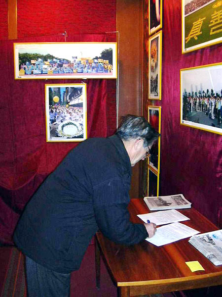 在整个图片展期间,学员们接待了各种各样的参观者,大家都感谢学员们认真的讲解,有些人说这里有一种特殊的感觉不想离开。有些人甚至主动要求签名,停止在中国的迫害;因为我们还通知了所有的学校,有些老师们就带着他们的学生来了解“法轮大法”;有人问哪里可以签名表示感谢;还有些人要求学习功法。这个博物馆的经理和工作人员也都学了大法的动作并得到了大法真相资料。