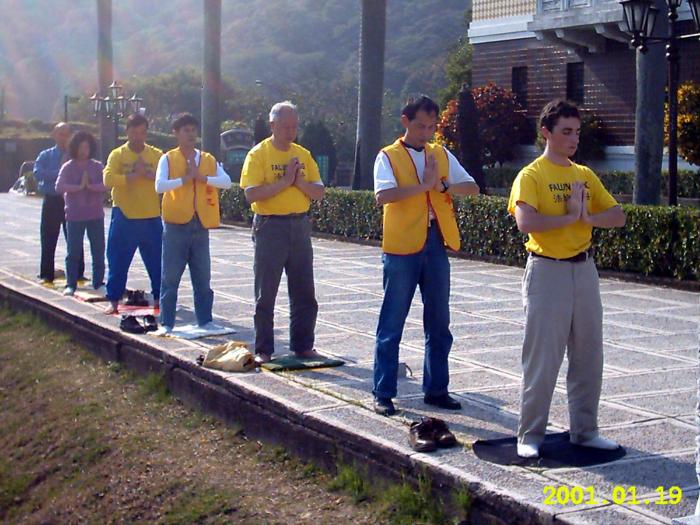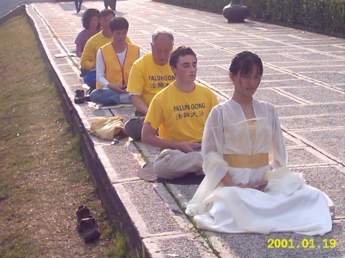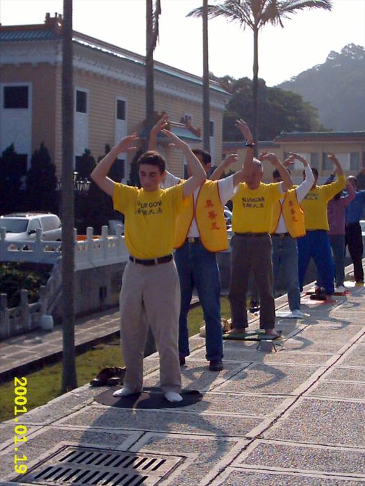二月二十一日下午的故宫充满了清新的朝气!古朴典雅的建筑依旧,来往的中外游客依然络绎不绝,不同的是,固定炼功的法轮功学员行列中多了一位清秀祥和的西人学员,而广场的栏杆旁则多了几位可爱的小朋友。