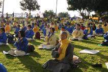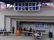 【明慧网2004年3月2日】2月29日,继洛杉矶心得交流会后,逾千名来自美国、加拿大、俄罗斯、韩国、台湾、瑞典等10余个国家的部份法轮功学员代表在Monterey Park的Barnes公园举行了模拟公审江泽民和新闻发布会,新闻发布会上法轮功学员用自己及亲朋好友的经历说明江氏集团对法轮功的