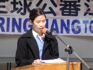 ,要求停止迫害法轮功,公审江泽民,并呼吁中国政府的领导层,用实际行动来表示对民众的关心,纠正江氏集团的错误,制止对无辜法轮功学员的虐杀,释放所有被关押的学员,追究迫害者的责任,并把他们绳之以法。