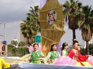 洛杉矶学员在玫瑰花车游行活动中讲真相