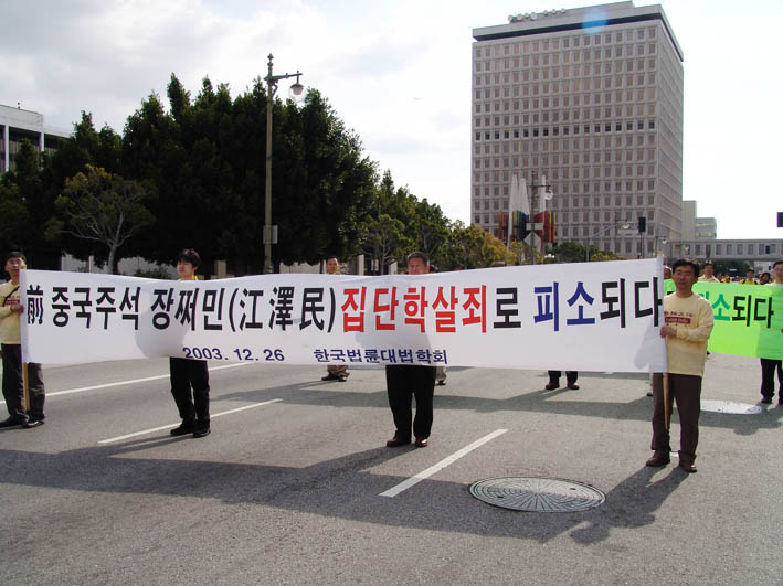 洛杉矶学员中领馆前集会声援吉林监狱绝食同修(图)