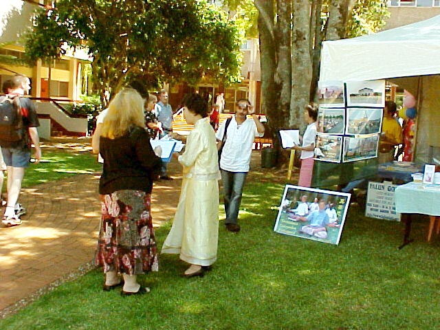 中午,校园中心人声喧嚷,热闹非常,教职员工都纷纷前来参加庆祝活动,学员们就利用此机会热情地向他们讲真象,并向他们征签,谴责江氏集团对法轮功的残酷迫害。很多人都在征签簿上签名,并表示信仰是天赋人权,任何人都不应该因信仰而遭到迫害,更何况法轮功奉行的是“真、善、忍”这样美好的原则。他们希望联合国人权大会和全世界爱好和平的人民一道制止中国对法轮功修炼者的迫害。