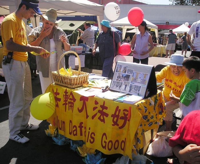【明慧网2004年3月22日】今年在市政府组织的一年一度的鹰歌本节活动中,悉尼学员申请的摊位正好在工党议员们和各社团中间,很多市民一到摊位即询问在本地哪里可以学功。在城市信息中心工作的一位工作人员,特意从自己的摊位上跑来询问在附近地区是否有固定学功的地方,因为很多人到她们那里问哪里可以学功。我们马上表示可以定期送洪法资料到她所在的中心,她深表感谢。