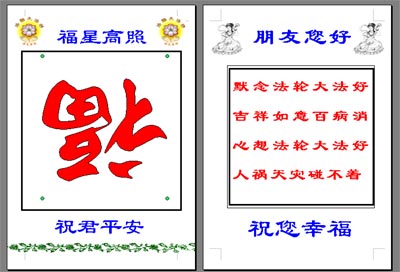 【明慧网2004年3月22日】大陆大法弟子设计的《祝福》小卡片,在面对面讲真象时,送上一个小卡片,世人一般都欣然接受。