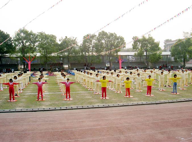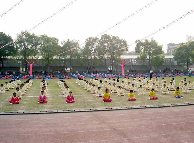 动态活动有炼功班的学生上台表演五套功法。祥和的炼功音乐,加上学生专注而平静的炼功情境,感动着在场的学童及家长。为了让全校师生能多了解法轮大法的美好,校长在功法表演的同时亲自向在场的师生及嘉宾介绍法轮功,并以亲身的经历,叙述着法轮大法带给他身心灵的改善。