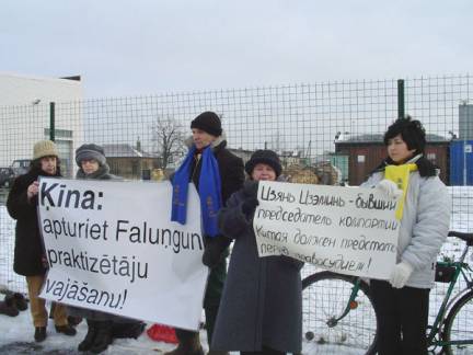 【明慧网2004年3月7日】在过去的几个星期里,江氏集团加剧了对法轮功学员的,在中国被迫害致死的法轮功学员人数已急升至901人。为此,2月22日,拉脱维亚大法弟子在中领馆前举行和平请愿活动,要求法办在中国迫害法轮功的主要责任人江泽民及其追随者罗干、刘京及周永康。