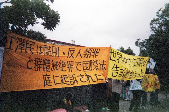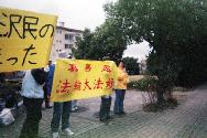 【明慧网2004年3月8日】2004年3月1日清晨,部分日本法轮功学员在中领馆前和平请愿,并出了「真·善·忍」,「法轮大法好」,「全球公审江泽民」,「要求中国政府法办江泽民,罗干,刘京,周永康等法轮功学员的真正元凶」的横幅。