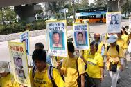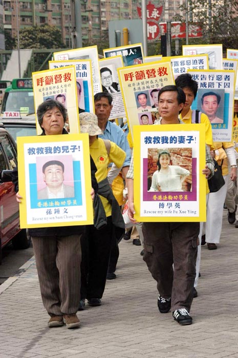 首日营救步行有超过50人参与,由港岛东区的柴湾出发,途经人口密集的几个地区,直达位于西环的中联办,前后历经七个多小时。孙钟文的70岁老母亲郑秀兰及傅学英的丈夫冯志文,和部份法轮功学员一起走毕了全程。整齐的步行队伍及醒目的看板,展示着被关押学员和发起迫害主凶的图片,吸引不少路人观看,并接过学员手上的传单。