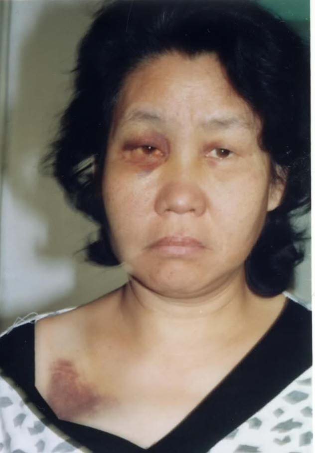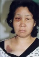 一位被关押在112监号的女学员,2001年1月3日中午被预审(210室)从号里提走,直到晚上才被抬回来。预审把她打得双手、双脚、两腿全都呈黑紫色;前胸、两肋、后背都是紫色的疙瘩。第二天管教送她到医院,以后就再也没有她的消息了。