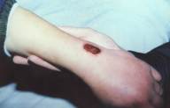 一位52岁的河北法轮功学员到天安门分局后,由于他不说姓名和地址,被警察在天安门分局连打3天,不让喝一滴水,吃一口饭。期间警察用警棍打他的背部及下身,还让他躺在地上,警察还用脚踩他的手,使劲拧,致使他左手留下5公分的伤口,手肿的不能抬起(见照片)……最后,警察往他的头部打了一针不知什么药,然后他啥也不知道了,醒来时,他才知道自己在北京一家急救中心……