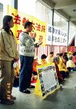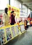 | 学员傅学英的丈夫冯先生发言 | 学员林俊慧的姐姐林女士发言 | 游行队伍 |