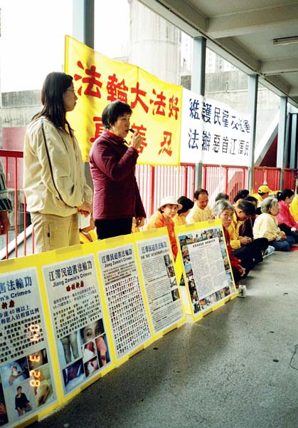 另一位发言的是被关押4个多月的香港学员林俊慧的姐姐林女士。林女士表示其胞妹因修炼法轮功遭到剥夺工作权,去年11月来港探亲回中国时,仅因身上带有法轮功真相材料即遭到罗湖海关国安部逮捕,迄今仍被非法关押于罗湖看守所。