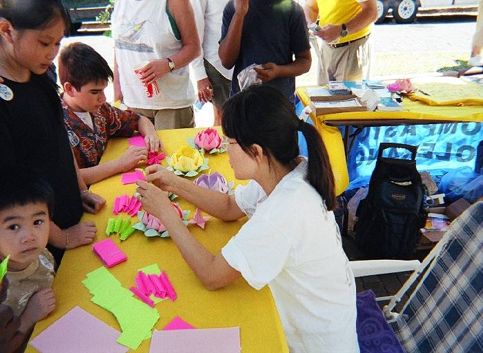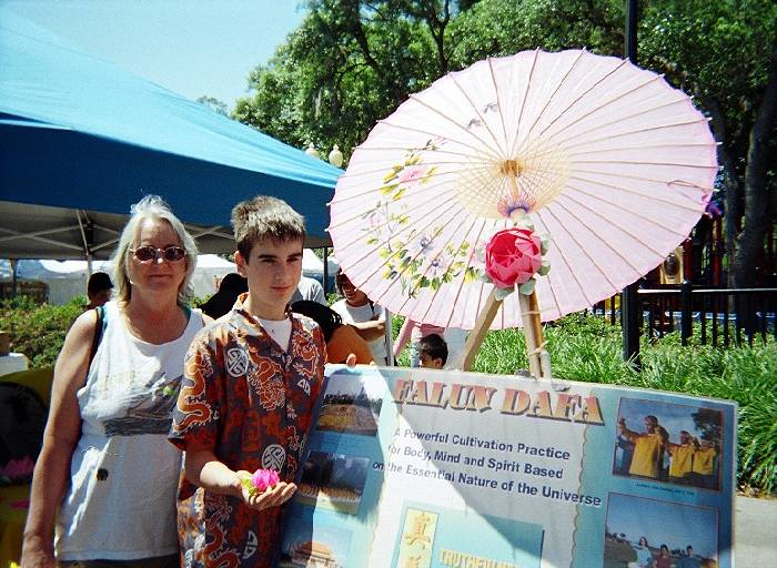 许多人要学法轮功,一些人当场就开始学炼。一些讲越南语和讲西班牙语的人高兴地找到了能与他们用母语谈话的学员。几个中部佛罗里达(UCF) 大学的学生询问了UCF 法轮功俱乐部主任关于如何修炼法轮功。住所就在UCF的联合国外交官和她的丈夫停下来跟我们交谈。她问我们是否征得了非政府组织 (NGOs) 的援助,并提到,因为他们是对政府官员提供信息的专家,所以在联合国人权委员会中担当着重要角色。