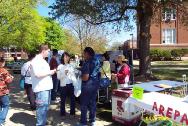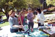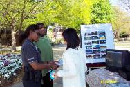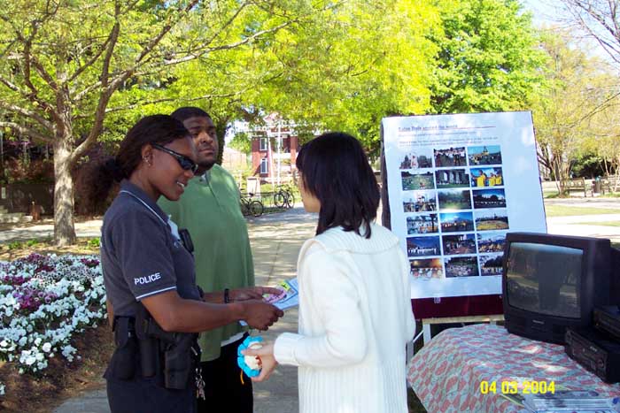 为了这次活动,当地的法轮大法学员在他们热心的朋友们帮助下,准备了三百多个彩纸莲花及毛笔书写的“真善忍”字条。当天,几乎每个来到法轮功学员展位的人都很欣喜的接过纸莲花及法轮功介绍资料。其间也有人来询问法轮功在中国无辜受到迫害的情形。同时,许多人要求学员教他们叠莲花。