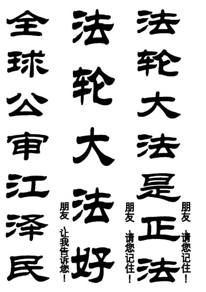 时至今日,邪恶之首江泽民因迫害大法和大法弟子已被告上了多国法庭,等待他的将是正义的审判,而这些打手们还在为江卖命,践踏人权和信仰,干着违背天理的事,希望他们能及时醒悟,将功补过,否则必遭天惩。