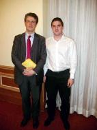 法轮功学员们送给他一条黄围巾,用以表示对在中国被迫害的法轮功学员们的支持。他高兴的收下并手持围巾和一位法轮功学员合影。
