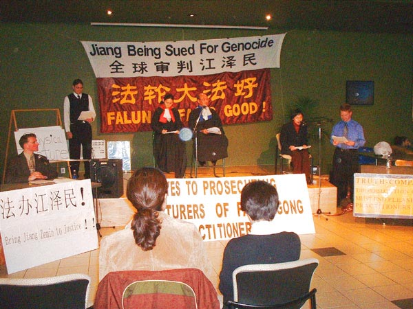 模拟审判基于大量事实,及证人、证词,公诉人等就江××一手发动、推行的,由“610”机构具体实施的对法轮功学员的精神、肉体和经济上的迫害作了全面的揭示,最后,法官宣判江罪名成立。
