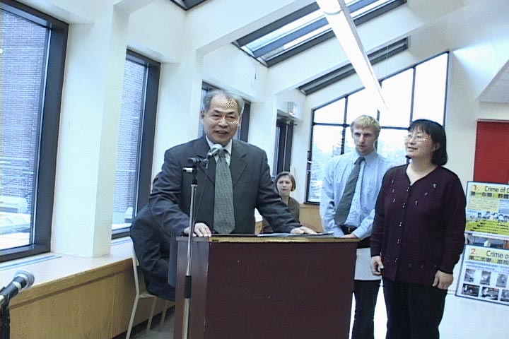 米盖尔大学(McGill University)的访问学者、加拿大公民、艺术学教授张昆仑也来到模拟审判的现场。张教授曾在中国因不放弃修炼法轮功,先后4次被拘捕,遭受严重酷刑和洗脑。