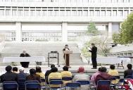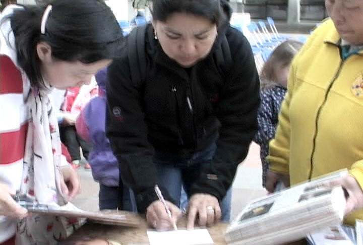 当时正值中午下课时间,许多学生、教师观看审江,阅读展板,接受真象资料,还有不少人主动来取明信片签名,支持张昆仑教授起诉江泽民。还有人来了解那里有炼功点、如何学功等。