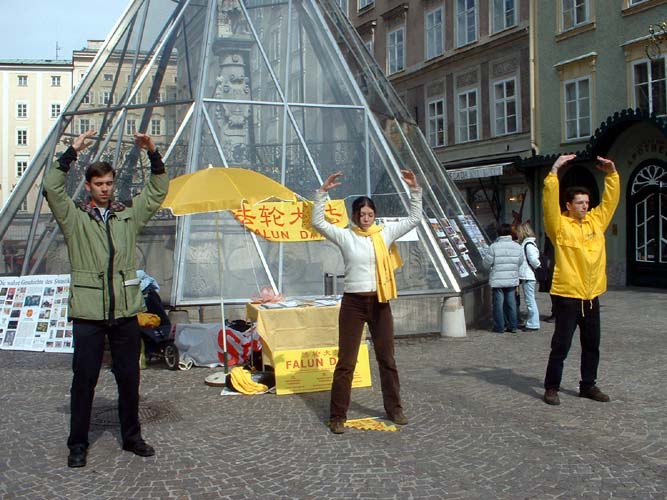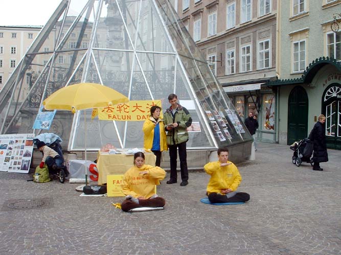 【明慧网2004年4月22日】随着春天的到来,到莫扎特的故乡萨尔兹堡游览的游客日益增多,这也给我们提供了一个向来自世界各地的人们讲真象的好机会。3月27日,我们数名奥地利学员来到萨尔兹堡,以炼功和发放大法资料的方式向来往的游客讲真象。